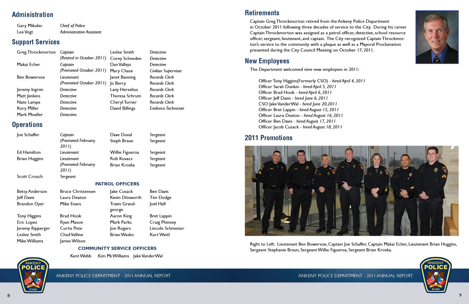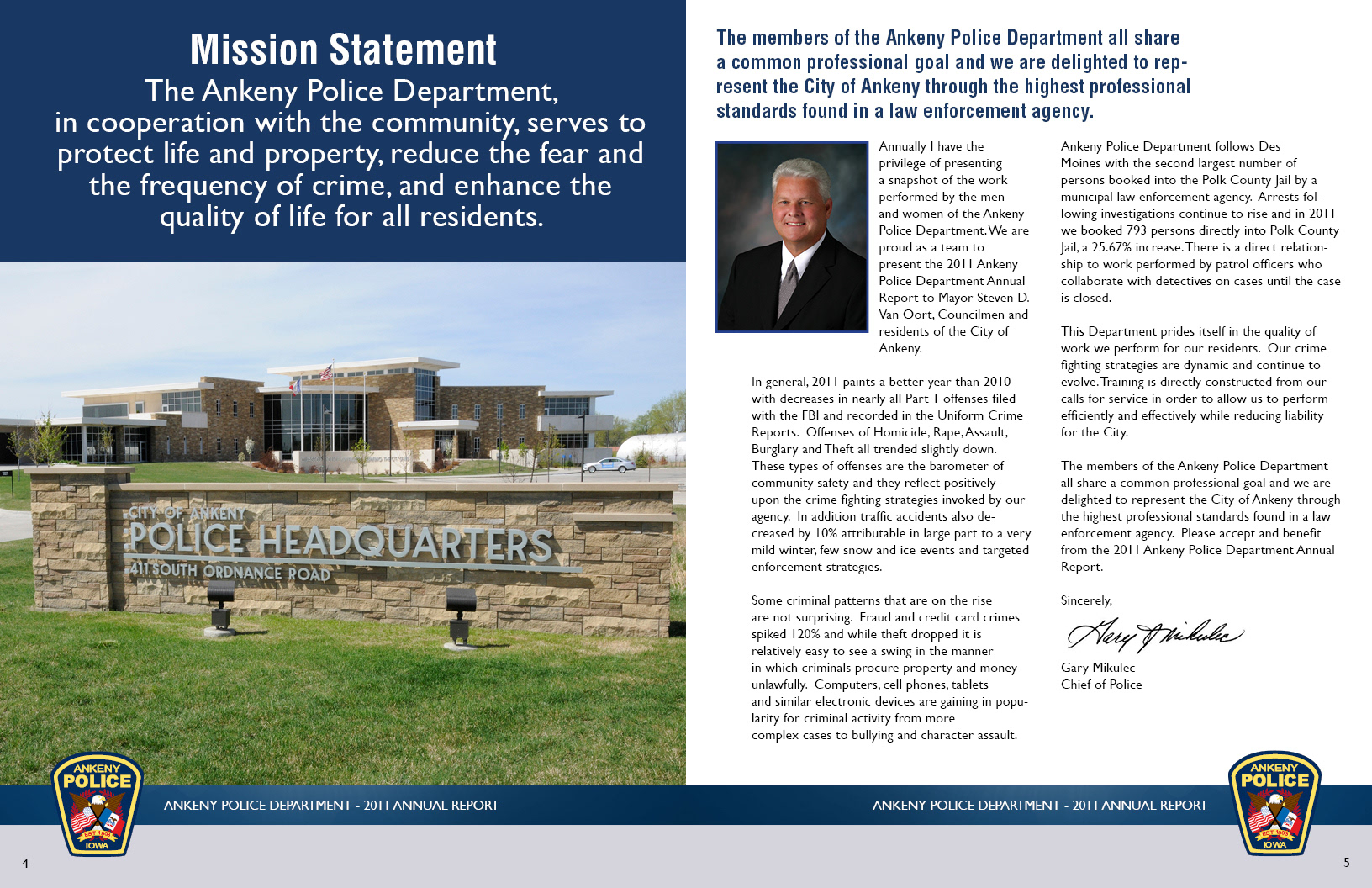 2011 Annual Report for the City of Ankeny Police Department. Used to report department goals and accomplishments to City Council and Ankeny residents.