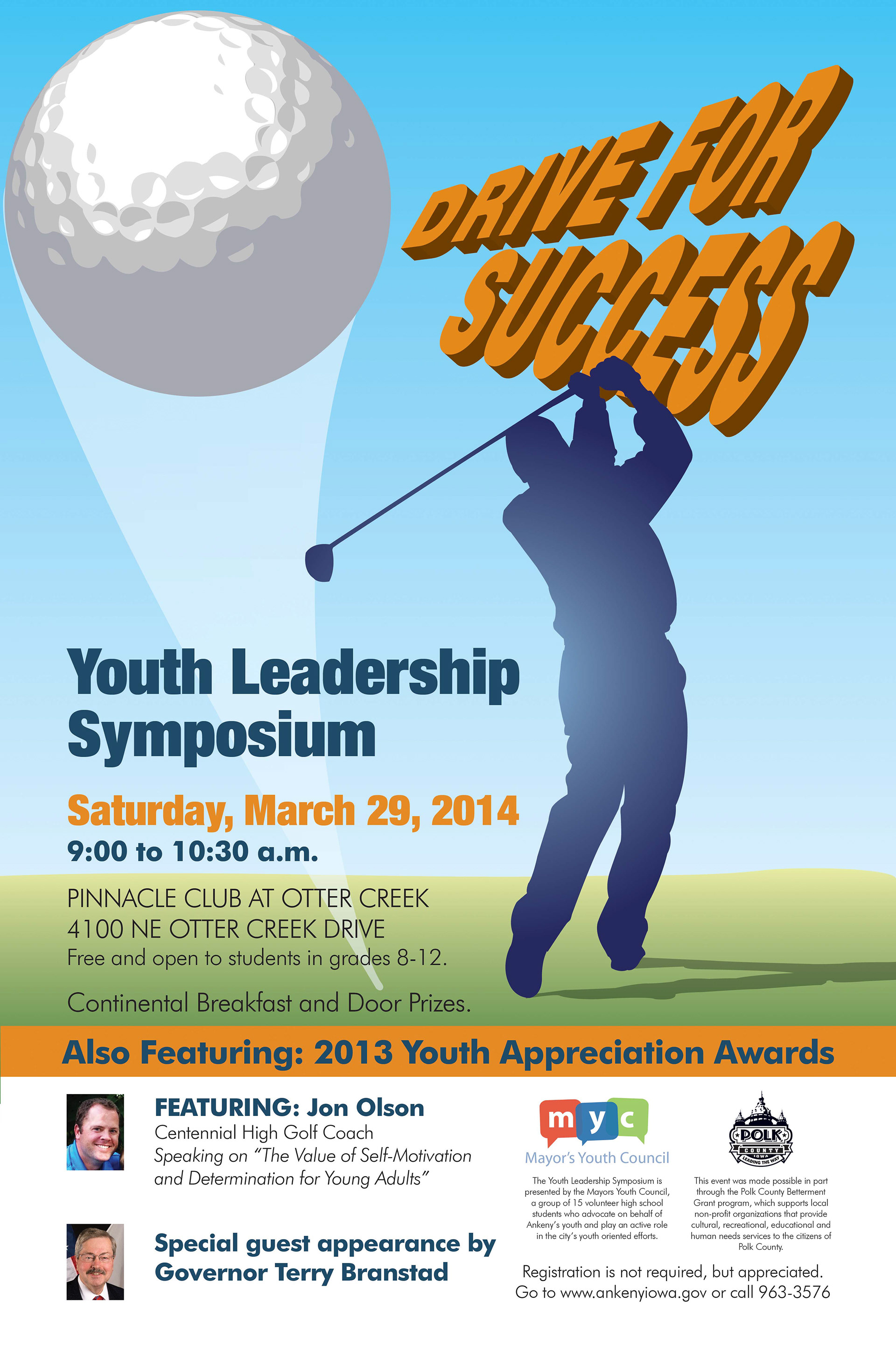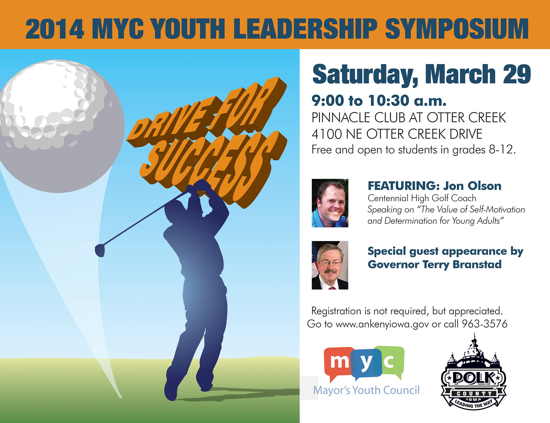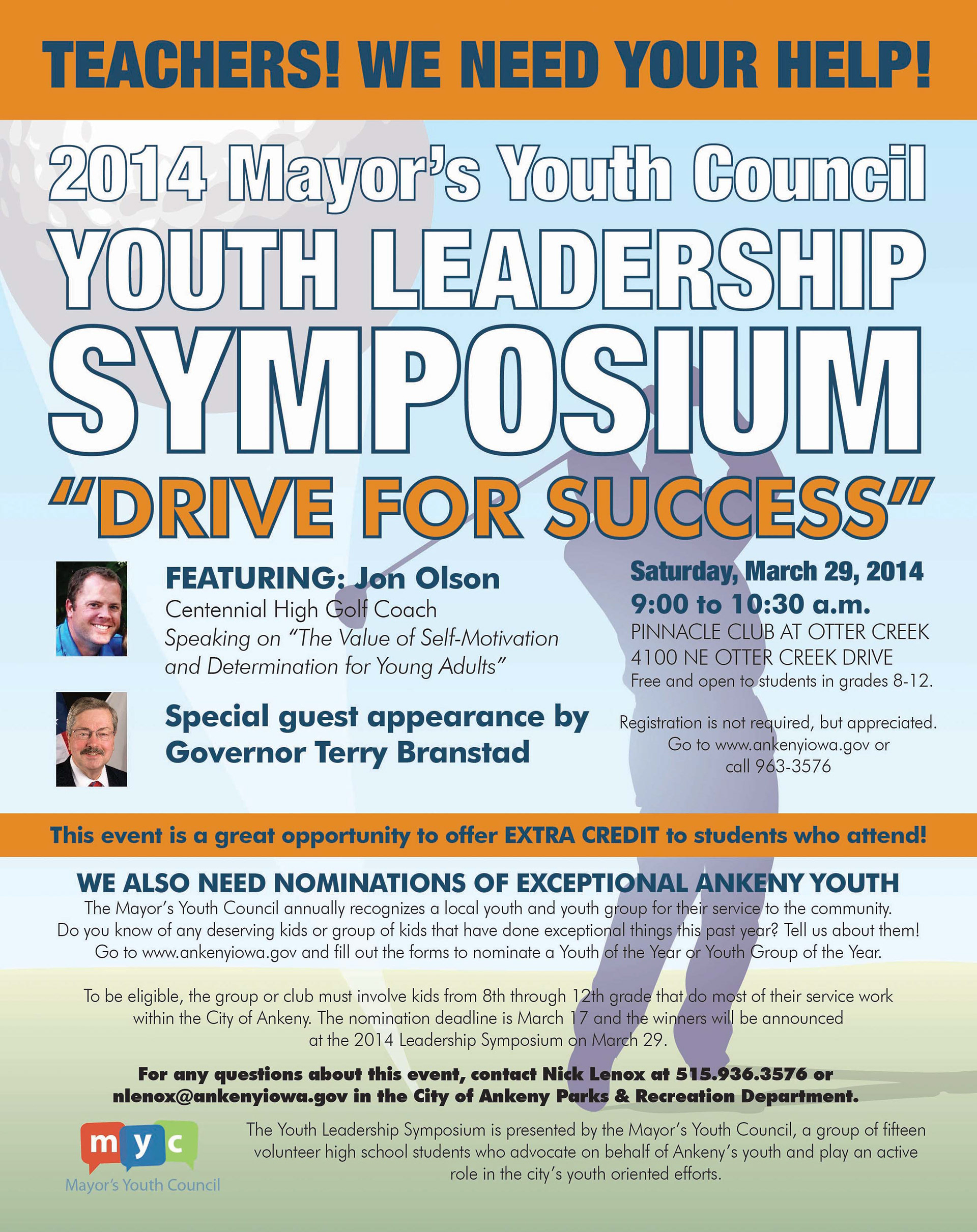 Promotional materials for Mayor's Youth Council Youth Symposium, highlighting success in the youth community in 2014.