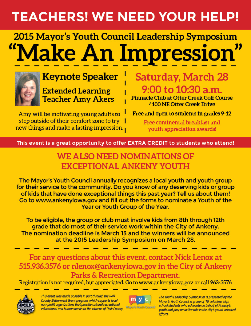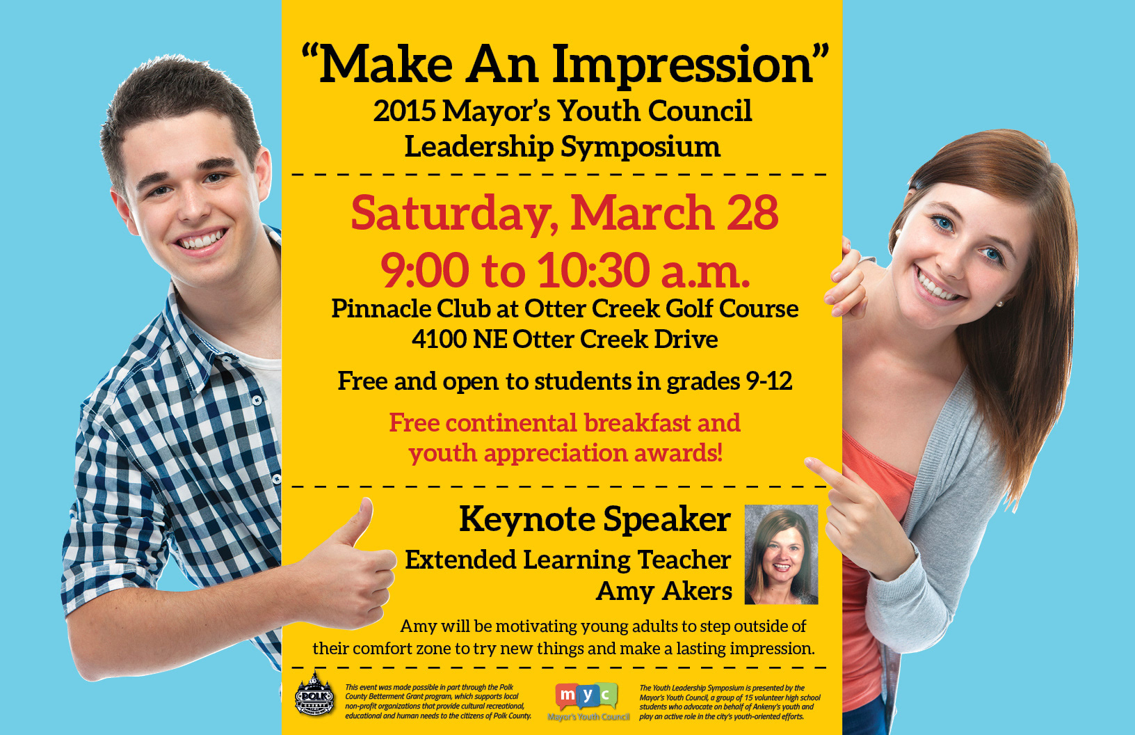 Promotional materials for Mayor's Youth Council Youth Symposium, highlighting success in the youth community in 2015.